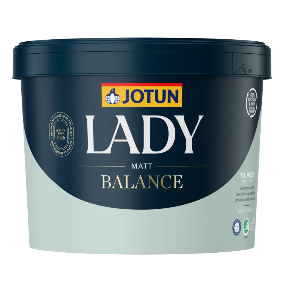 Med Jotun Lady Balance får du ikke bare en flot væg – du får også tryghed i hverdagen. Den lave lugt gør malerarbejdet mere behageligt, og du kan hurtigere tage rummet i brug igen. Det gør den særligt velegnet til projekter, hvor komfort og indeklima er i fokus.